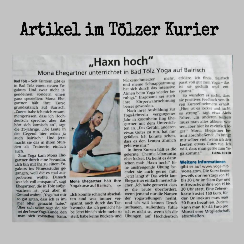 Mein Anfänger & Fortgeschrittenen Yoga Kurs auf bayrisch findet in Bad Tölz und in Gmund statt.